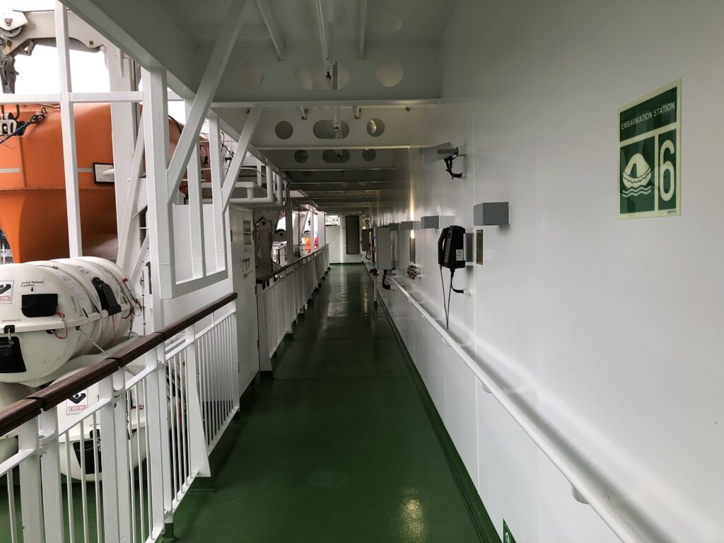 De implementatie omvatte de montage van veiligheidsinstructies in de hutten en algemene ruimtes, vluchtroutesignalering op ooghoogte en low location lighting voor zichtbaarheid tijdens verminderd zicht. Deze uitgebreide aanpak van veiligheidssignalering zorgt ervoor dat Global Mercy en Africa Mercy nu volledig voldoen aan internationale normen en voorschriften voor veiligheidssignalering*.