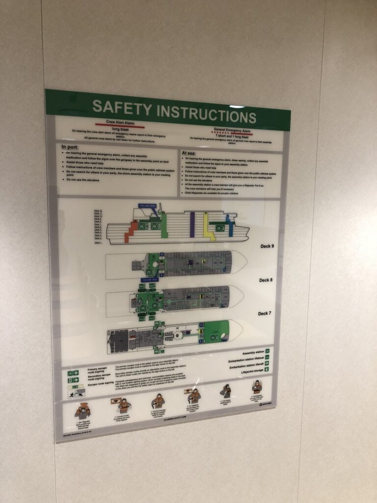 Blomsma Signs & Safety heeft uitgebreide veiligheidsinstructies geïnstalleerd in hutten en openbare ruimtes van beide schepen. Deze instructies bieden informatie aan de bemanning en passagiers om effectief te reageren op noodsituaties.