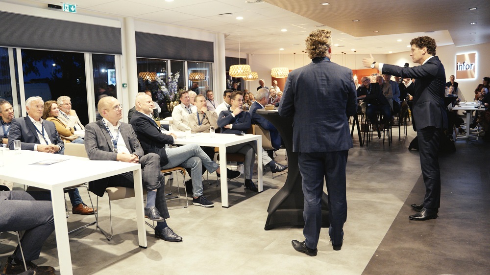 Henk Bijsterbosch van brancheorganisatie Samen Digitaal Veilig maakte de 95 ondernemers in de zaal wakker op het gebied van cybersecurity waaronder de nieuwe grootschalige NIS2-wetgeving die ondernemers aangaat.